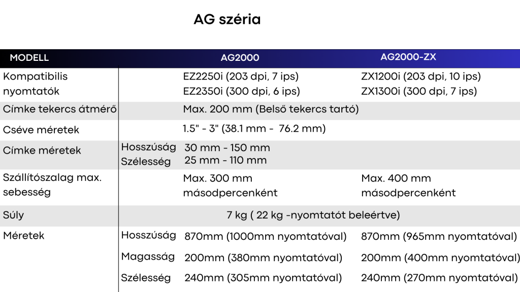 A Godex AG-széria olyan „print-and-apply” címkéző rendszereket foglal magába, amelyek nyomtatják a címkét és egy lépésben fel is viszik azt a termékre (pl. roll-on, tamp, blow-on módban) nagy pontossággal.