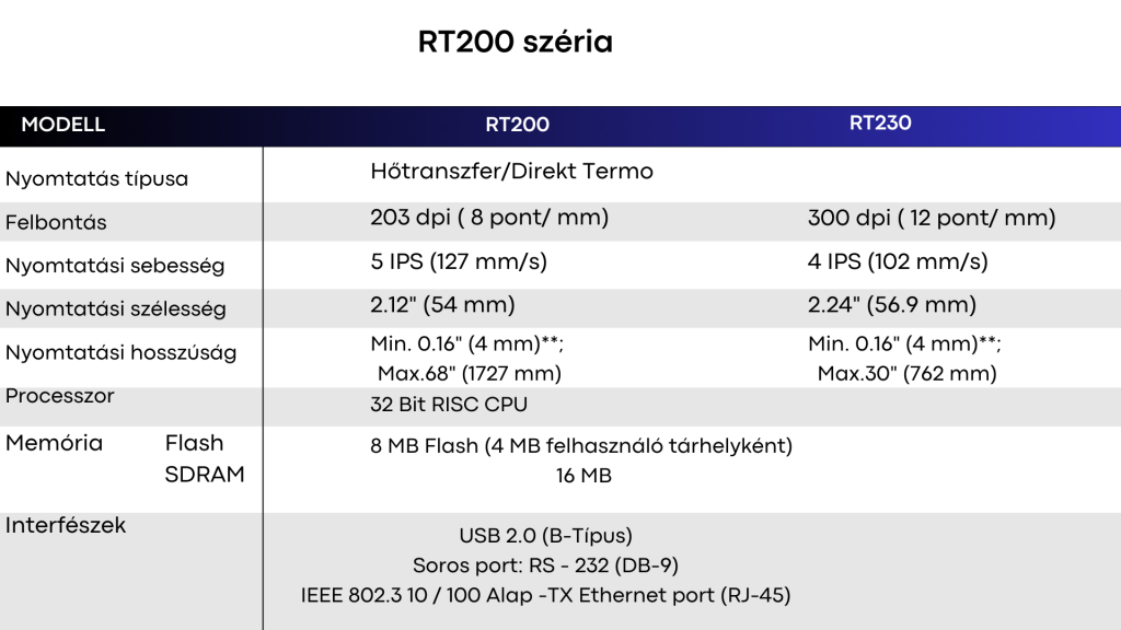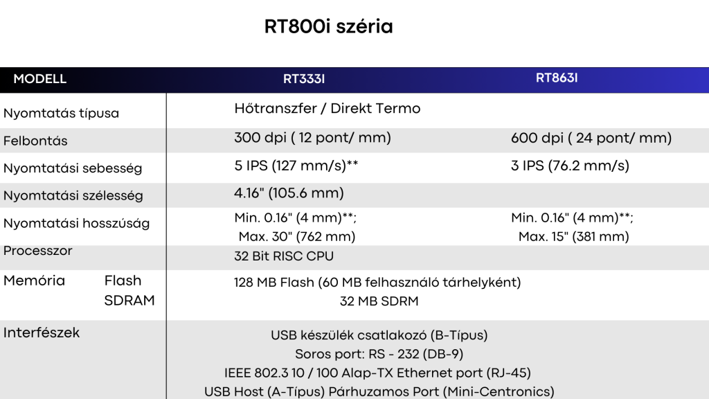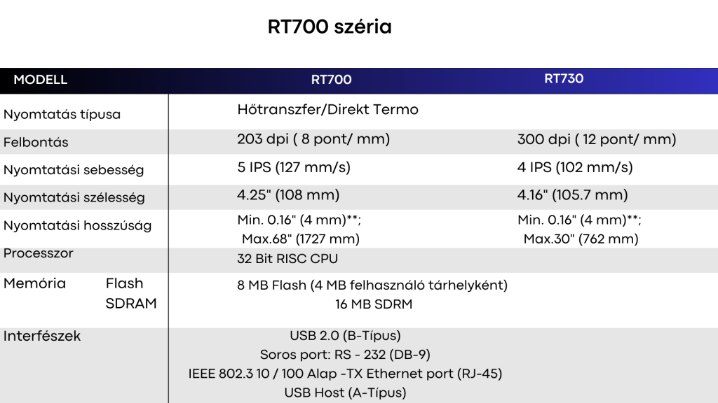 - 1″ festékszalag átmérőig, max. 300M festékszalag kapacitás